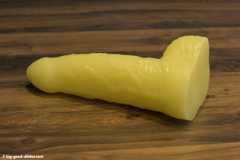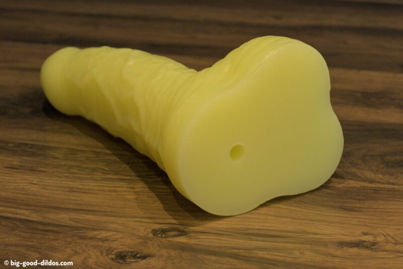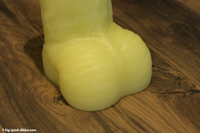 As the shape moves down toward the base, the diameter continues to increase, ending in a large base that integrates clearly defined testicles, contributing both to the visual realism and to overall stability.