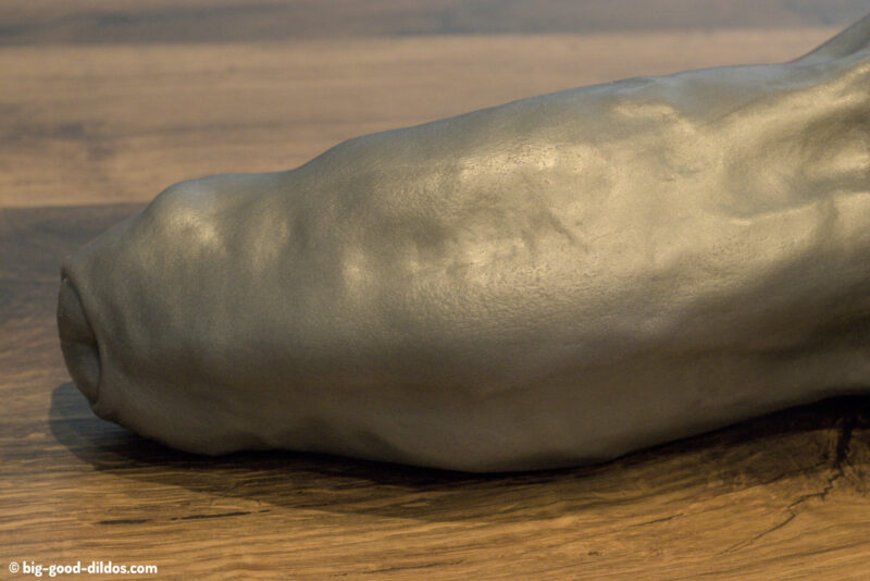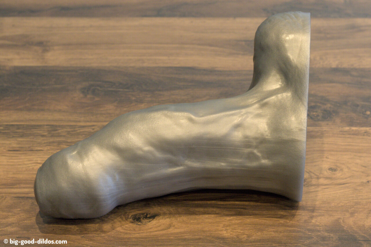 The curve of the dildo also deserves mention. Unlike many models that remain straight or slightly inclined, Goliath leans noticeably backward, away from the testicles. This is a somewhat unusual design choice that may be surprising at first glance and contributes to the model’s visual identity.