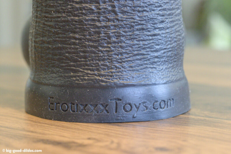 At the bottom, there is a non-textured circular base, smoother, bearing the brand’s usual inscription. This base does not contribute to the realistic design of the toy, but ensures good stability and a finish consistent with other Erotixxx Toys models.