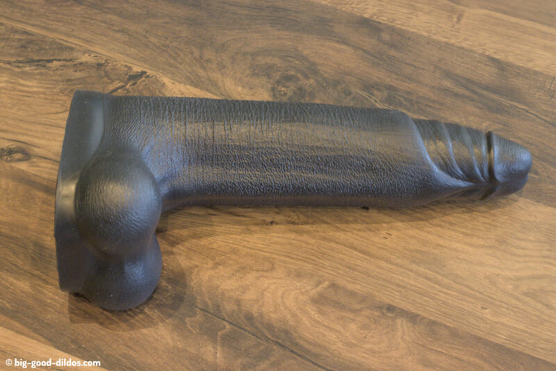 The main shaft gradually widens as it goes down toward the base, with a progressive increase in diameter rather than an abrupt change. This variation remains visually subtle, but is very real. The testicles, massive and well defined, feature the exact same rough texture as the rest of the body, with no smoothed transition zone.