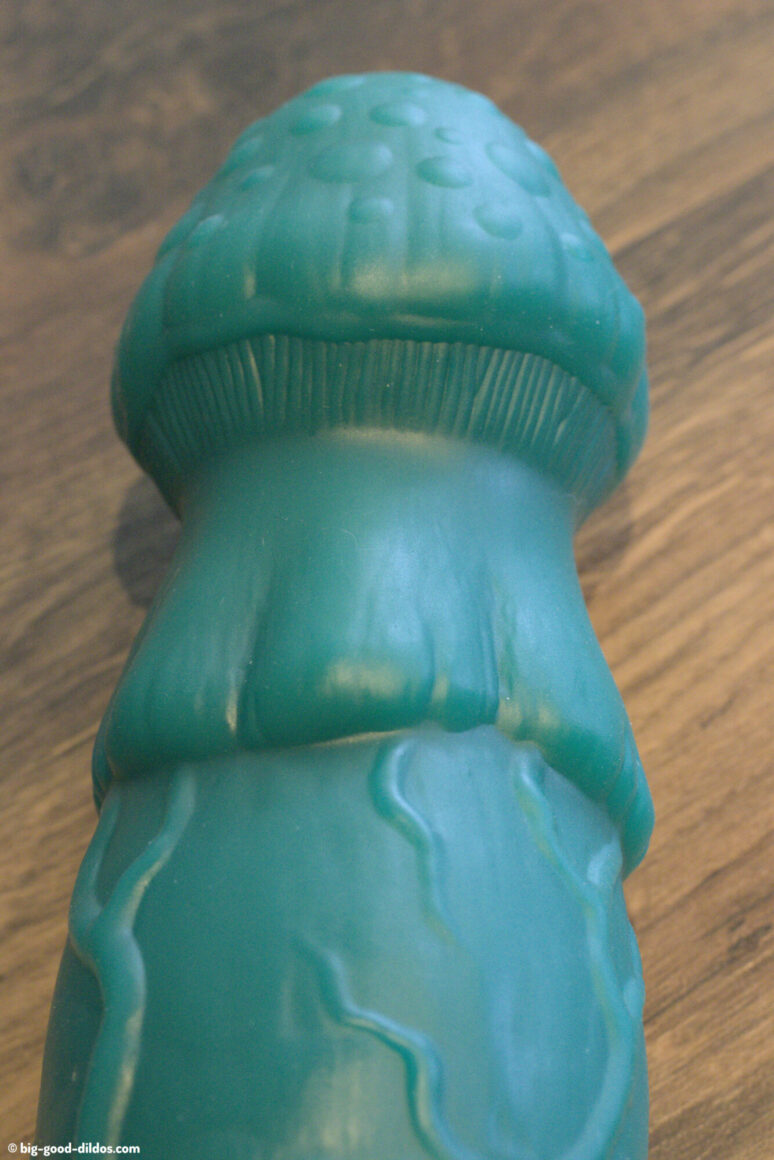 Sous le chapeau, Erotixxx Toys a intégré une zone texturée qui rappelle le voile partiel des amanites — cette membrane qui se déchire lors de la croissance du champignon. Le résultat est une sorte d’anneau strié, très lisible au toucher, qui marque la transition avec le reste du toy.
